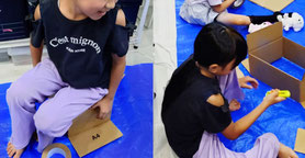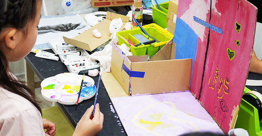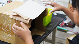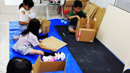 8月の前半は夏休みのため、レッスン時間を少し増やしダンボールを使った自由工作!