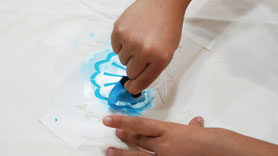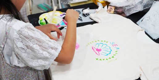 9月の前半はステンシルを使ってオリジナルTシャツ作り!既製品のステンシルを使ったり、コートボール紙でオリジナルステンシルを造ったりして、絵柄を転写してゆきました。